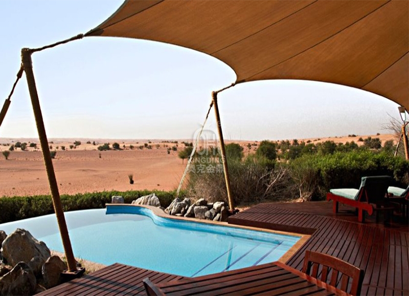 本項目施工完成后是比較大器而壯觀的,由幾十個單品膜結(jié)構(gòu)帳篷酒店整體統(tǒng)一規(guī)劃、布置的要素,富有一點剛度的穩(wěn)定曲面的她,體現(xiàn)了她的文化、設(shè)計理念和內(nèi)涵。膜結(jié)構(gòu)本身飄逸的造型讓客人深入其中時感覺她的人文、地理,仿佛進入似成相識的夢境,離開時回味她的魅力與莊嚴(yán)。